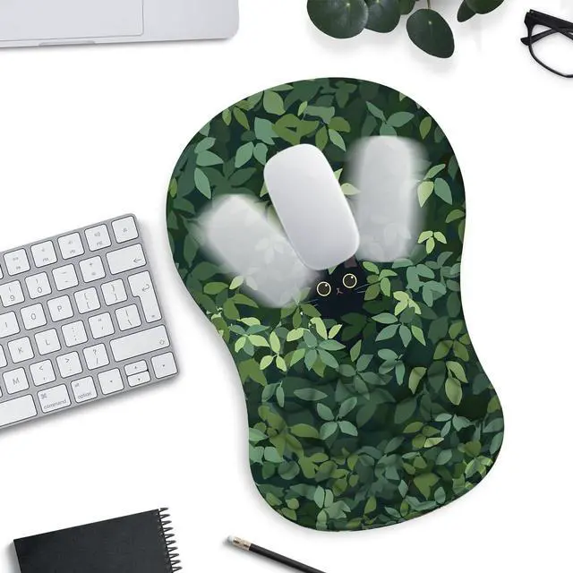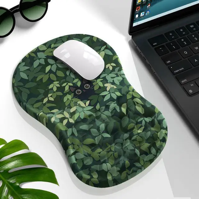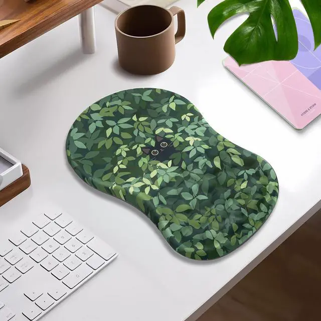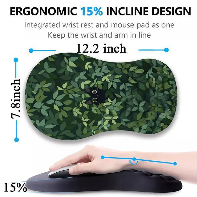 Cute Cat Ergonomic Mouse Pad with Wrist Rest Green Mousepad, Comfortable Desk Mat Mouse Pad Office Computers Desk Suitable Relieve Wrist Fatigue Mouse Pad Wrist Support Desk Mouse Pads 12.2 X 7.9 in