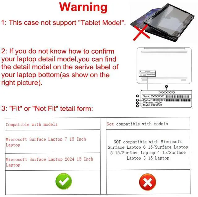 Warning: NOT compatible with Microsoft Surface Laptop 6 15/Surface Laptop 5 15/Surface Laptop 4 15/Surface