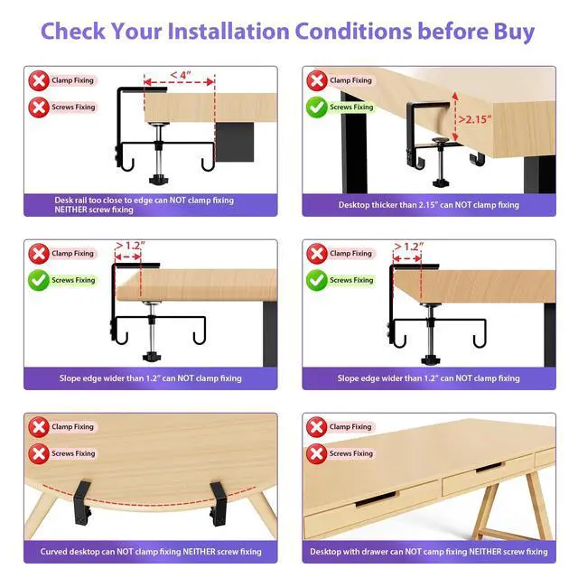 Large Capacity and Durable. The cable tray size 48"L x 5.5"W x 5.5"H, it fits all size adapters and sockets, holds and hides everything under your table. It is ideal cable management under desk. ^^ Two Ways Installations. This under desk organizer supports both no drill clamp on and screw fixing installation, it fits all table top materials such as wood table, glass table, and metal table. ^^ Make Cable Management Much Easier. You can unfold the tray for much easier adding or removing items, every item can be fixed in the tray by using the build-in ties.