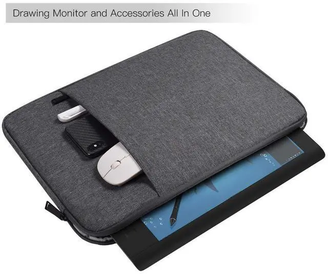 Graphics Drawing Tablet Monitor Sleeve Case Bag for Wacom Cintiq 16/ Cintiq Pro 16/ Intuos Pro PTH860Why choose Our Drawing Tablet Sleeve Bag? Our protective drawing sleeve case made of high-quality waterproof Canvas fabric, which obstructs water and vapor effectively. Lightweight andslim design not only gives your device the most functional and fashionable look but also durable and portable. Outstanding and Useful Function You Cannot MissExtra Pocket in FrontProviding additional storage space for smaller items, such as pens, charging cables organized, and other accessories. Perfect Protection for your deviceEspecially soft and anti-static, the drawing tablet sleeve of the soft lining can effectively absorb impacts and reduce damages caused byaccidentally bumping & scratches.