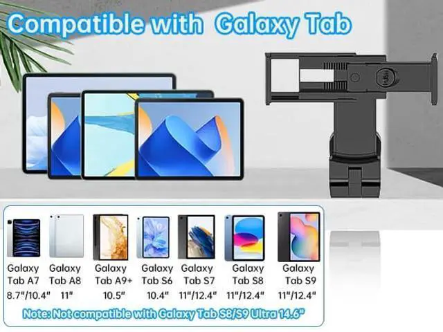 Universal Perfect Travel Tablet HolderThe Elokipoe airplane tablet holder is designed for airplanes to discover more fun on your travel. The airplane tablet stand is wide compatibility, compatible with iPad/mini/Air/Pro ( 7.9 -11"), Galaxy Tab ( 8.7 - 12.4" ), Kindle (6-7"), and other 7~12-inch tablets. (NOTE!!! The tablet stand is not compatible with iPad Pro 12.9", Galaxy Tab S8/S9 Ultra 14.6", Kindle Scribe 10.2" ) ^^ Flexible And AdjustableThis travel essential is a must-have for you. It can serve as a tablet stand that can rotate to achieve the best viewing angle while watching or reading on flight.