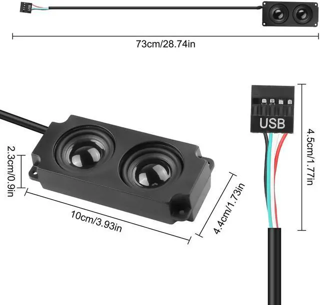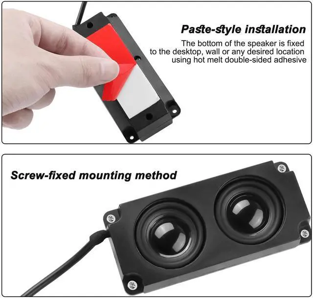 This Mini desktop PC speaker is a compact, hidden design with two sturdy speakers that are small but loud, allowing you to enhance your audio experience without taking up space ^^ The inside of the motherboard speaker is imported chip amplifier, 16-core internal magnetic speakers to make the special sound more dynamic, carbon fiber diaphragm, to provide clear bass sound audio texture, lower distortion, to give you a great realistic live listening experience. ^^ The back of the small stereo is hot melt double-sided adhesive, not easy to come off, small, does not take up space, you can effortlessly stick to any place at the computer case.