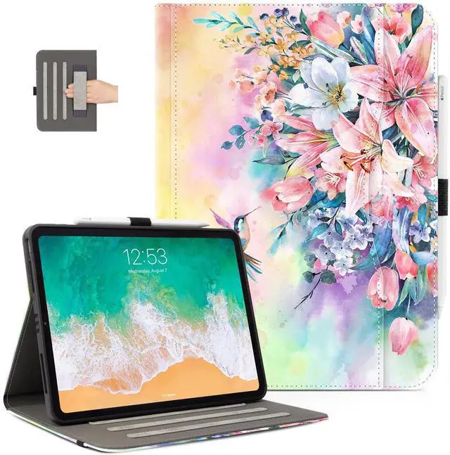 Auto Sleep/Wake & Pocket]: Built-in magnetic strip ensure it automatically wakes your iPad when opened and puts it to sleep when closed to save battery life. The pocket on the front for you to store your cards, pics and notes ^^ [Full