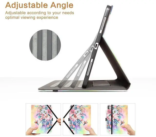 Hand Strap]: With three anti-slip stripes design for the iPad to sit in to stabilize it, never slips when you have it in a tilting position. Also the hand strap beside the stripes enables you to hold it more stable when the iPad stays upright. Adjustable angle design, Provide you comfortable viewing and typing experiences. You can find the perfect viewing angle for any situation, whether it's work, entertainment, or browsing. Experience hands-free convenience like never before ^^ [Smart
