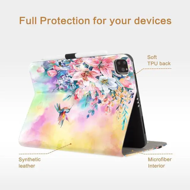 Protection & Heat Dissipation]: Premium thickening shockproof TPU back case and durable front cover help protect your iPad from daily bumps scrapes and accidental drops. The bottom features with honeycomb design for heat dissipation