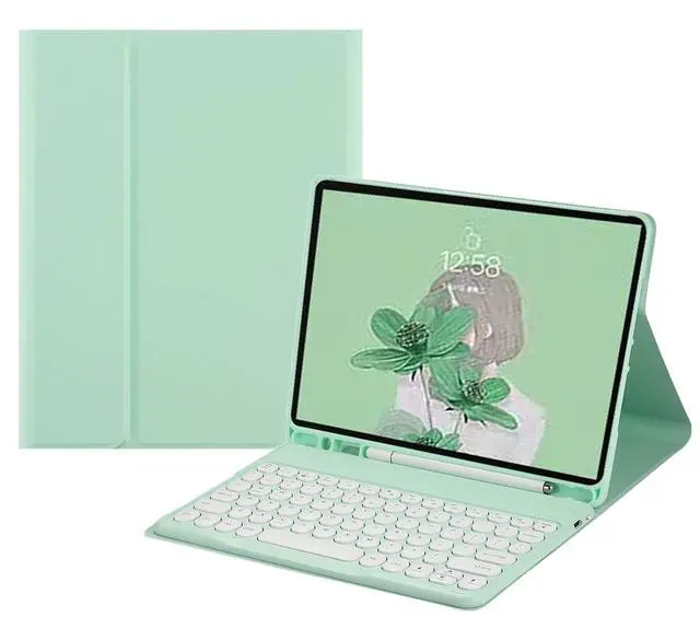 Keyboard Case for Galaxy Tab S10 Lite/S10 FE/Galaxy Tab S9 FE 5G 10.9 Inch/Galaxy Tab S9 11 Inch 2023/S8/S7, Protective Cover with Detachable Wireless Keyboard with S Pen Holder for Galaxy Tab S9 FE (X510/X516/X518) 10.9 Inch 2023 and Galaxy Tab S9/S8/S7, Candy Color Cute Round Key Keyboard