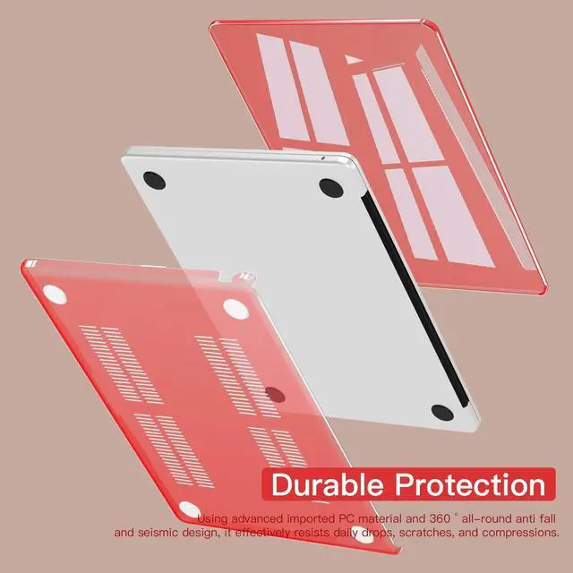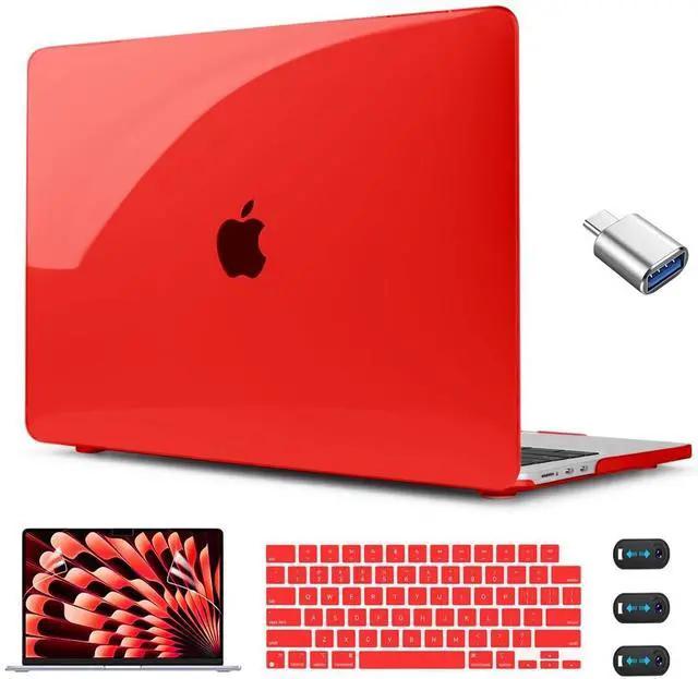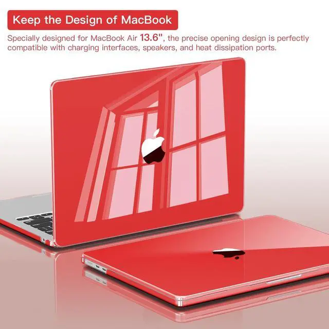 ^^ WARNING: NOT FOR MacBook Air 13-inch 2018-2021 Release M1 A2337/ A2179/ A1932 model and other model laptops. Please kindly check the model number "Axxxx" on the back of the laptop before purchase, make sure you choose the right model "A3113" or "A2681" or "A3240". ^^ [Simple Case, Logo See Through Design] Made of premium plastic material, Ultra slim but Sturdy and Durable, Light-weight ( 8.2 oz or 230 g) with soft touch crystal logo shine through Crystal Red color texture surface like a glove. No cut out design that makes your midnight/starlight/space gray/silver macbook air m2 m3 out of the ordinary while keep the original design. ^^ [Two Separated Pieces Case, Snap on/Clip On Design] Top Cover and Bottom Cover Two pieces (separated cover) and Snap on design, easy to clip on and take off, let you open/close your MacBook freely all the time. Thunderbolt port access, also access to all ports without removing the case. Bottom cover with vent slots to heat dissipation and 4 raised rubberized feet to keep your laptop firmly on the place. ^^ [5in1 Bundle