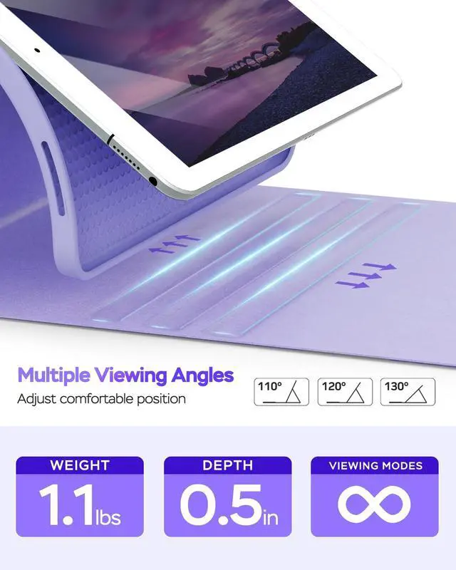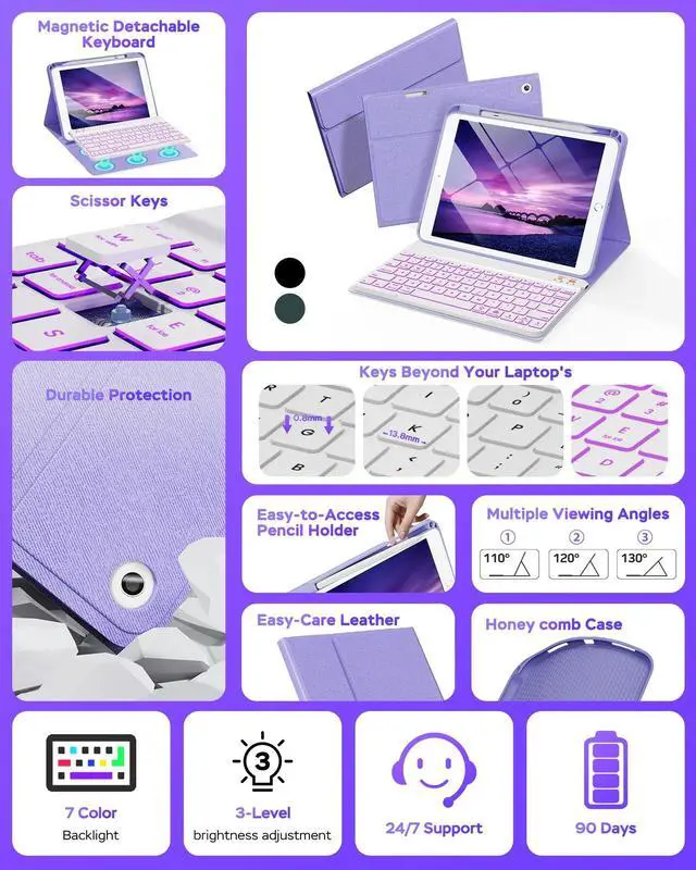 Illuminate Your Typing: Enhance your iPad with a 7-color backlit keyboard and laser-etched keys. Perfect for any lighting, from late-night work to cozy cafes. Enjoy quiet, comfortable typing with customizable backlighting and ergonomic scissor-switch keys ^^ All-Day Power for