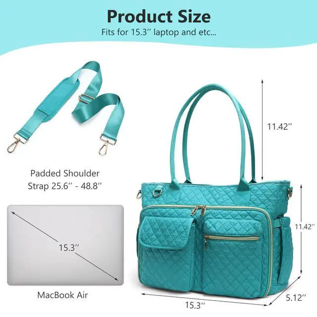 Size: 15.3 x 5.12 x 11.42 inches. The cushioned laptop compartment of this slanted teacher bag provides the best protection and can be easily placed into 15.3 -inch laptops and iPads.