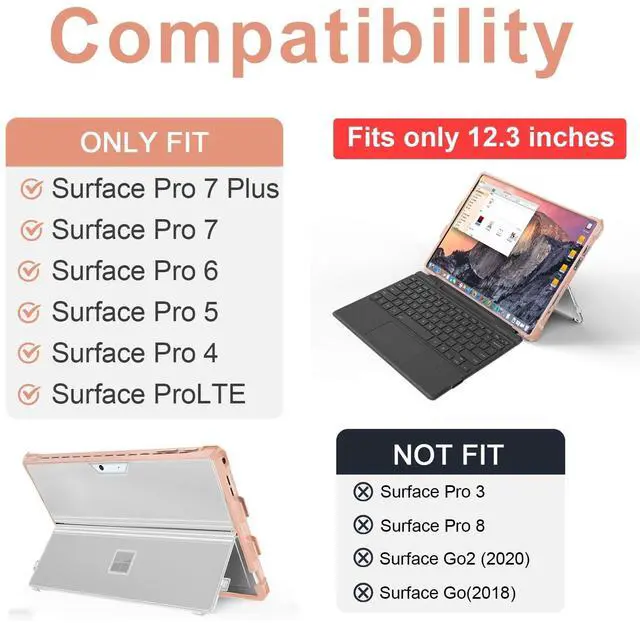 Keep Your Stylus Secure: Integrated Surface Pen HolderNever misplace your Surface Pen again. This case includes a dedicated, elasticated loop holder strategically placed on the side to keep your stylus snug and secure. It ensures your pen is always conveniently at hand when you need it for note-taking or creative work. Wide Compatibility for 12.3 -inch Surface Pro ModelsThis case is precision-engineered to fit a range of 12.3 -inch Microsoft Surface Pro tablets perfectly, including: Microsoft Surface Pro 7 Plus (2021) Microsoft Surface Pro 7 (2019) Microsoft Surface Pro 6Microsoft Surface Pro 5 (2017) Microsoft Surface Pro 4Microsoft Surface Pro LTE