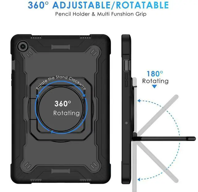 LAYER DURABLE PROTECTION: Case for Samsng Tab A9 Plus 11 inch is consists of a tough PC inner shell and a top PC frame to help protect your tablet. Flexible outer silicone can absorb the impact from accident drop or shock, providing in full body protection. NOT included screen protector ^^ GALAXY TAB A9 PLUS CASE WITH SHOULDER STRAP: Tablet cover for Samsung Galaxy Tab A9 Plus contains a shoulder strap which can be attached to any of the 2 holes. You can carry your tablet like a messenger bag. You can also hang the tablet on the back seat of the car ^^ COVER FOR SAMSUNG TAB A9 PLUS WITH ROTATING STAND: Galaxy Tab A9 Plus shockproof case comes with foldable stand, you can adjust angles at will. Adjustable Hand Ring can makes you hold or use your tablet easily in all directions. The rotating bracket can also be used as a handle ^^