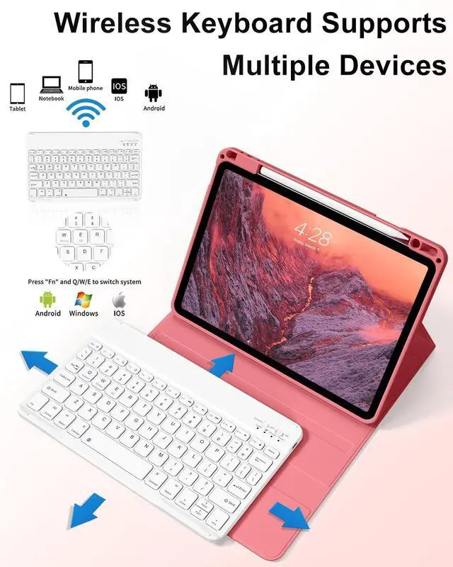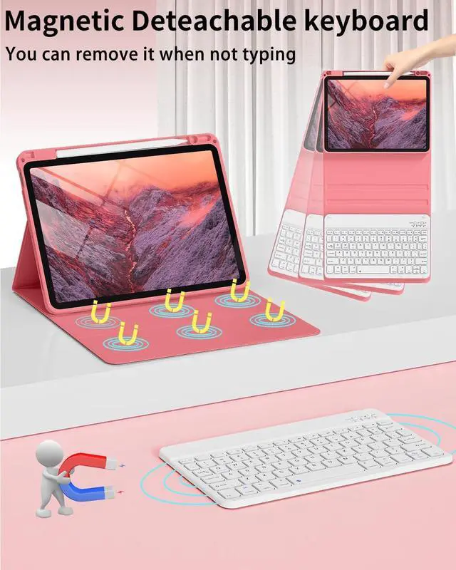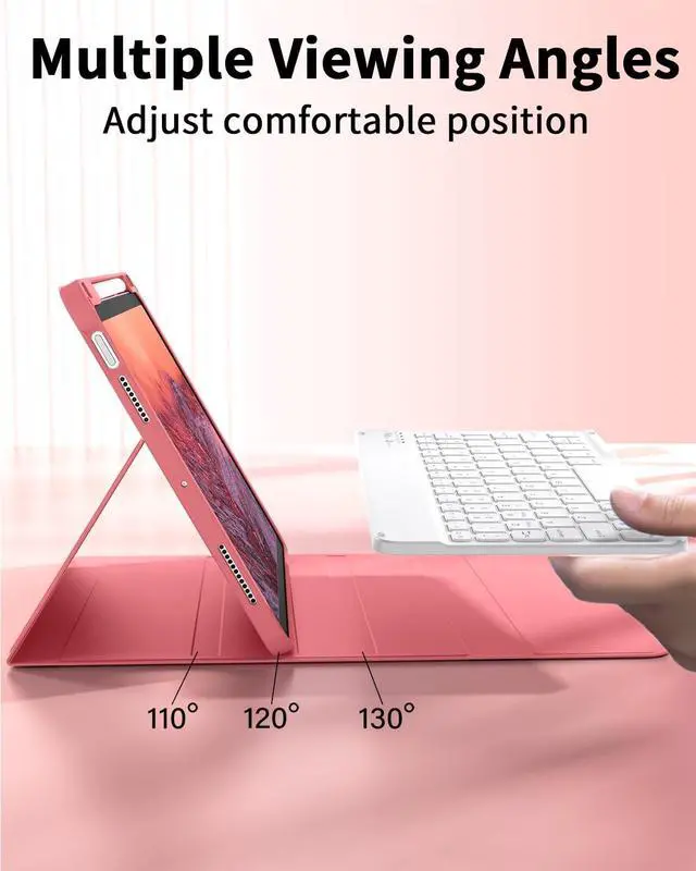 (Note: pencil is not included) ^^ Multiple Viewing Angle and Auto Sleep WakeThis Keyboard Case adopts magnetic adsorption and can be firmly fixed on the case, so it can provide a variety of stand angles for adjustment at any time. Move iPad forward or backward along the case to choose the angle that works best for your comfort. Built-in magnetic strip, support smart automatically wakes or sleep function, easily wake or close your iPad at any times, it can better save tablet power and extend its service life ^^ Package Content and