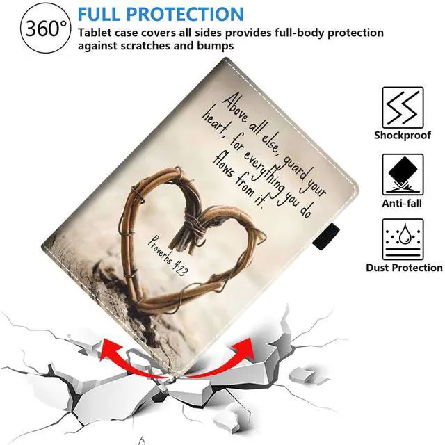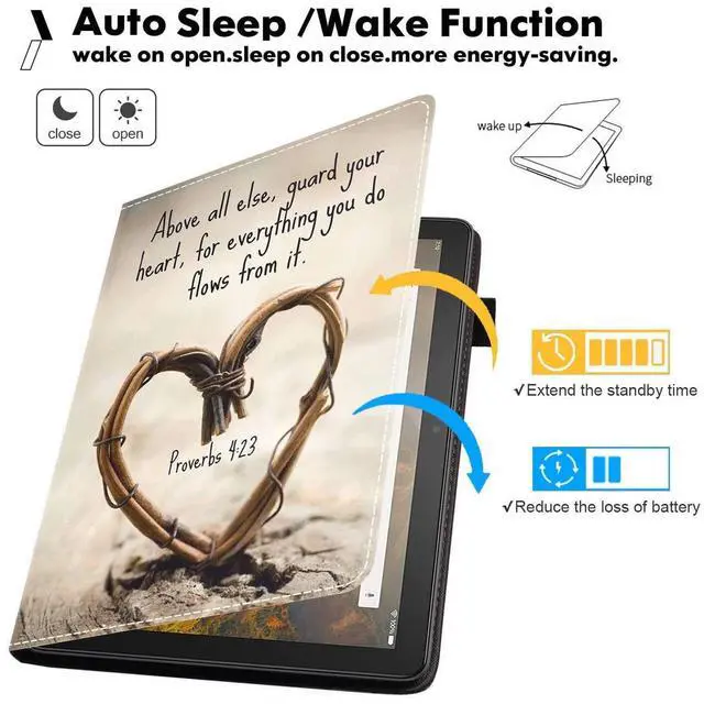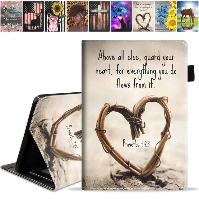 TBXOSTN Case for All-New Kindle Fire 7 Tablet (7" Display, 12th Generation, 2022 Release), Premium PU Leather Stand Cover with Smart Auto Wake, Bible Verse Proverbs 4:23