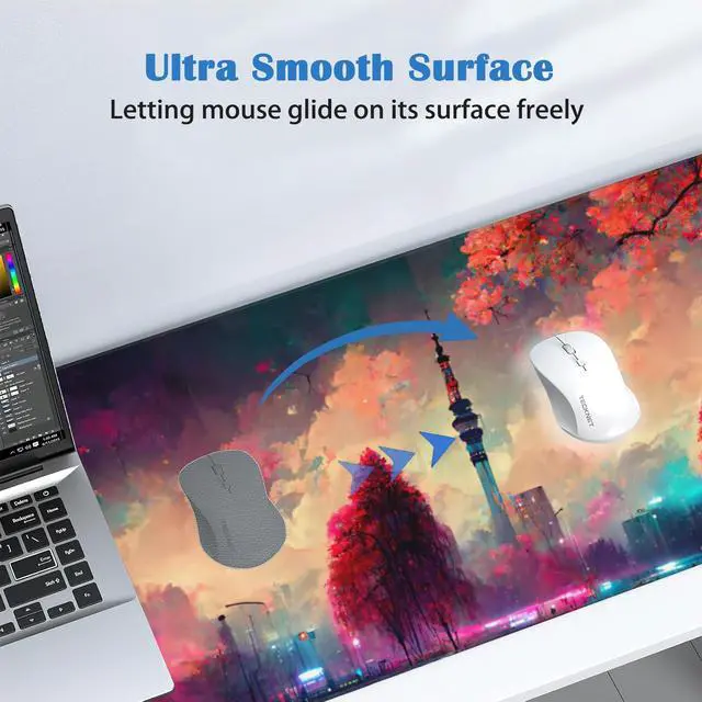 Large Mouse PadThe desk mouse pad measures 31.5 x 15.7 inch, with 2 mm thickness, big enough to accommodate your computer, laptop, keyboard and other desk items, and still leave plenty of space for your mouse to move all around. ^^ High qulity Workmanship and MaterialsThe mouse pad has delicate stitched edges, it is individually hand crafted with high quality warkmanship so not fray, deformation and degumming in prolonged use, relax to use. The computer mouse pad is thick and feels soft in the hand, which will provide comfortable support while typing, reading, writing and even sleepping.