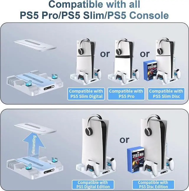 The Ultimate Gaming Command Center: Forge the ultimate gaming setup by unifying your console controllers and games into one powerful hub This all-in-one PS5 stand is the central pillar for your entire PlayStation 5 ecosystem keeping everything organized and battle-ready ^^ Peak