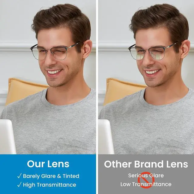 [Premium Polycarbonate Lens] Offer the newest high-tech lens, barely tinted, and improve clarity of your glasses to restore the true color. The Lens are anti-scratch coated to improve the durability of the glasses. Our Lens are anti-reflective to reduce glare. Polished metal technology, pass the 48-hour ongoing reliability test, is not easy to fade, and has no pressure on the bridge of the nose! ^^ [Blue Light Glasses] You can filter a great percentage of the harmful light coming at you from your electronic devices. Reduce eye strain, fatigue, migraines, headaches & glare after long periods of working, gaming and reading.