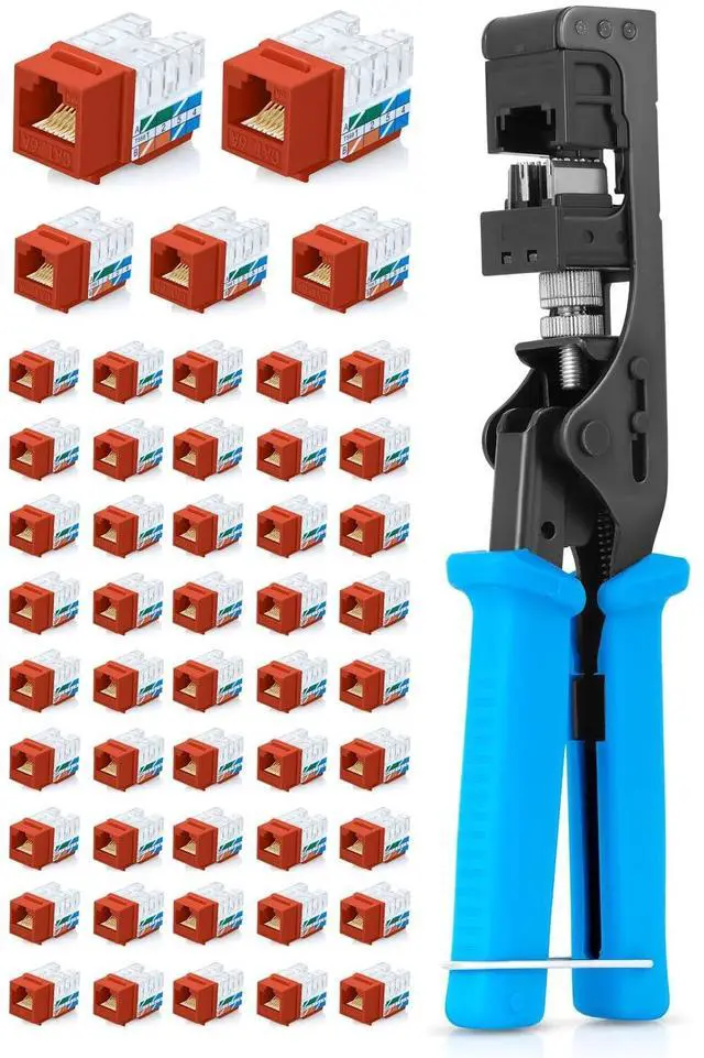 Product 2 - 90 Angled CAT6A Keystone Jack in Orange - Slim Profile RJ45 Ethernet Connector - Compatible with 90 Angled Speed Termination Tool - easyJACK (B094WB91H3) - 50-Pack