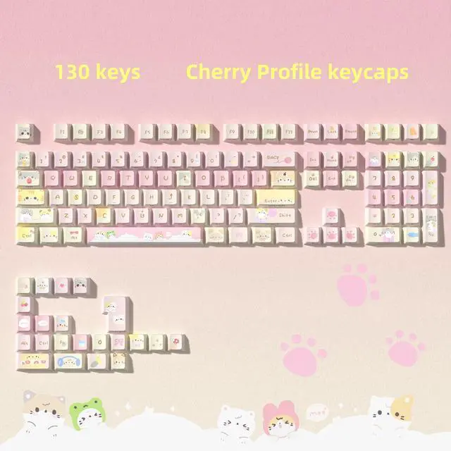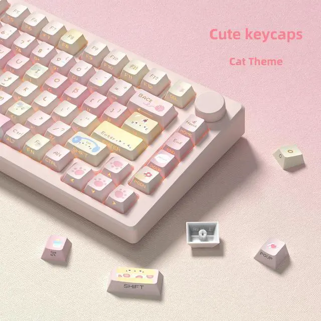 Double shot PBT keycaps setThese keycaps set are made with double shot process and are designed to be durable and provide a comfortable feel every time you press them. Made of durable PBT material, these key caps are resistant to wear and ensure a fresh look for a long time. ^^ Dye Sublimation Keycapthe Dye Sublimation keycap enhances the overall durability with water and dust resistance. It is sculpted to be more efficient and comfortably pressed that can reduce the distance the fingers need to stretch to reach each key. ^^ Elegant Pink Keyboard Keycaps Enhance your keyboard beauty with a pink cat keyboard hat set.