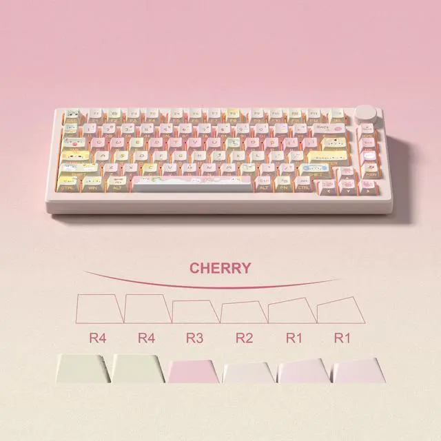 These custom keyboard caps add a pink romantic element to your keyboard and are perfect for users who crave uniqueness and style. ^^ Cherry Profile keycapClassic design. Ergonomically, it won't be tired after long-term use. ergonomic design cherry height, designed for backlit/non-backlit mechanical keyboards. ^^ Side Printed &Shine Through keycapsUsing the most popular Side Printed element for keycap characters, we set a precedent for double-light transmission of characters and lines, with every outline and line backlit, making typing in low light easier than ever. ^^ What You Get1x130 keycap set and 1 keycap puller, compatible with most ASIN US and UK layout 61/64/68/84/87/96/98/100/104/108 mechanical keyboards.