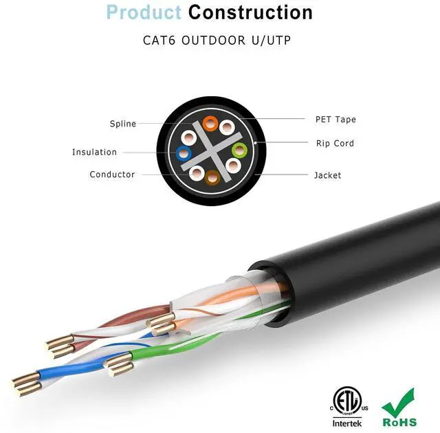 RELIABLE OUTDOOR DURABILITY. When you need to run a high speed Ethernet cable outside, look no further than celertec for the best selection of Cat6 Outdoor cable. The outdoor cables are constructed with LLDPE jacket that withstand the elements such as UV, rain and temperature changes. Provides superior performance to PVC jacket in harsh environments. ^^ DELIVER FUTURE PROOF SPEED AND PREMIUM CONNECTIVITY SOLUTIONS. 23AWG 4 Pair U/UTP Cat6 outdoor Ethernet cable is tested to 550MHz bandwidth. Perfect for 1Gb networks and 10Gb speeds at shorter distances. It supports PoE and VoIP applications.