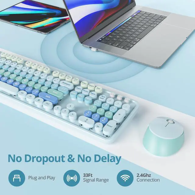 Keyboard Design: Elevate your workspace aesthetic with the delightful charm of our keyboard's retro typewriter-inspired design. Each key evokes the nostalgia of vintage typewriters, infusing your workspace with a sense of whimsy and sophistication. With a palette of vibrant colors to choose from, you can select the perfect hue to reflect your personality and enhance your workspace ambiance.