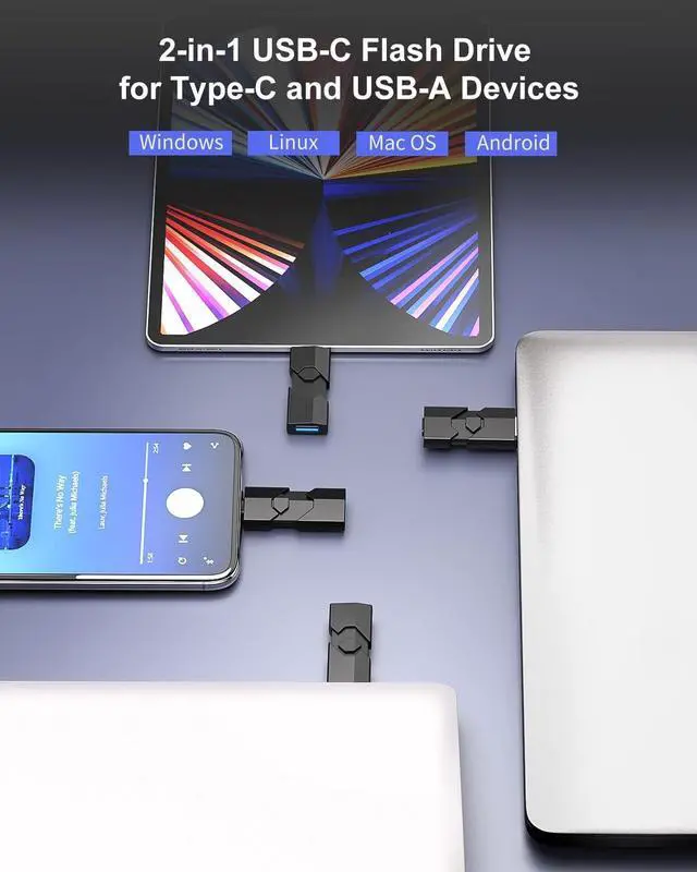Dual Drive: Built with both USB Type-C and USB-A connectors, this USB-C flash drive works across your USB Type-C smartphones, tablets, iPhone 17/16/15 Series, iPad Pro, Macs, laptops, and USB Type-A devices, offering you seamless transfer without the need for extra adapters ^^