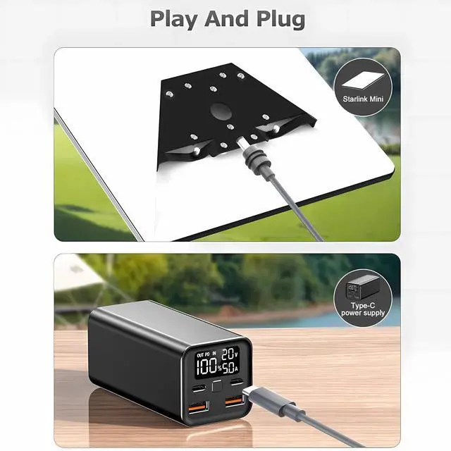 Efficient Power Transfer & Compatibility: Integrated with the PD Smart Receiver Chip, it communicates with the PD source chip of a 20V PD Type-C power supply to adjust voltage to 20V for DC barrel jack output. It works with 100W PD-compatible power banks (20V 5A output) to stably power the Starlink Mini dish antenna.