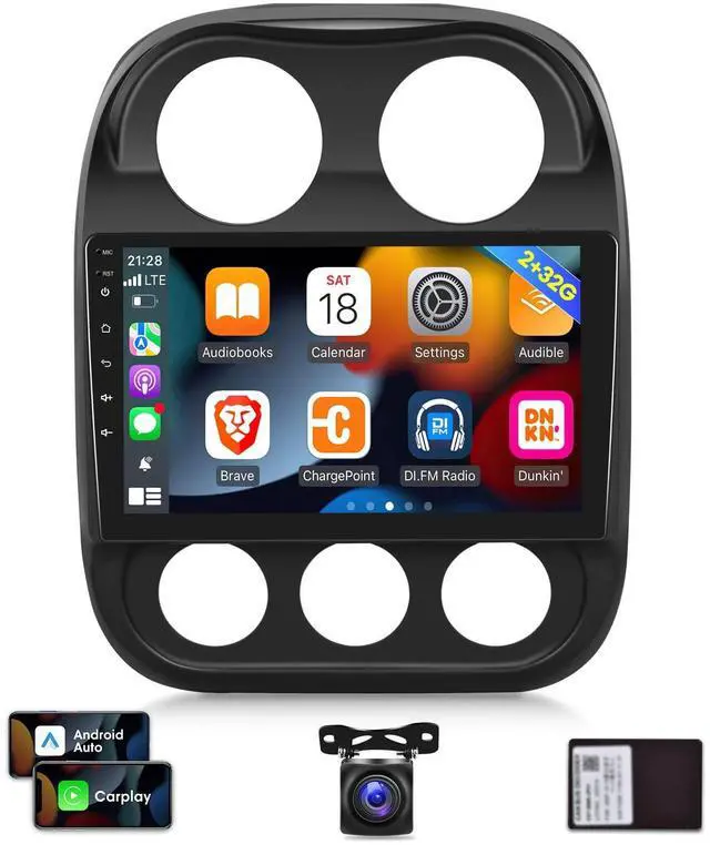 Vehicle CompatibilityThe car radio for Jeep Compass Patriot 2010 2011 2012 2013 2014 2015 2016. Please confirm the shape of center console, car model, and year before purchasing. Our Jeep Compass Patriot radio has the plug and play wiring harness include Canbus to support the original steering wheel controls, AHD reverse camera, etc. If you have any questions about our Compass Android radio, please feel free to contact us. ^^ Android 11 System & HD Better DisplayThis upgrade Jeep Patriot car stereo comes with a 4-core CPU, 2GB RAM + 32GB ROM and the latest Android 11 system, making the Jeep Patriot radio performance even better.