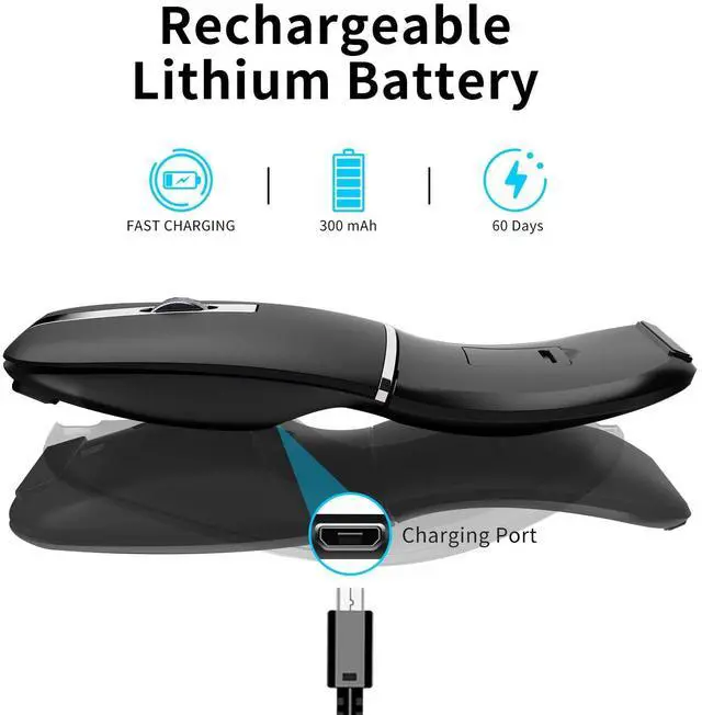 New Upgrade Dual Mode Mouse- 3-speed DPI adjustable from 800-1000-1600. The mouse can be connected to your device through Bluetooth 5.0 / 3.0 or USB receiver. You Can Switch to any mode by sliding the mode switch button at the bottom of the mouse. *The Bluetooth mode does not require a USB receiver, and the 2.4G mode can be used by inserting a USB receiver. * ^^ Ultra Slim and Lightweight- The mouse can rotate 360 degrees, and in an arc-shaped state, it can fit the curvature of the palm. In a flat state, the size is ultra-thin and easy to put into pocket or laptop bag and ultra space saving.