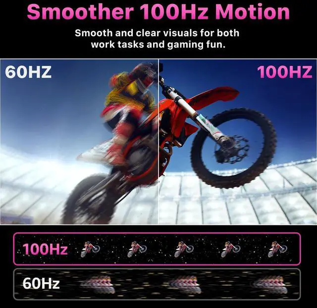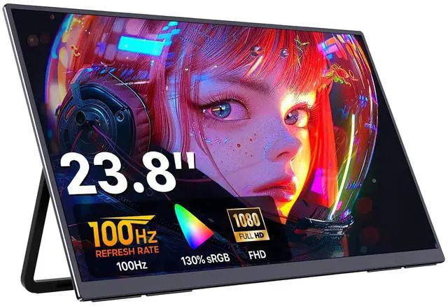 23.8 '' Large-Screen Portable Design 23.8 -inch FHD IPS screen offers sharp visuals, 178 wide viewing angles, and expanded workspace. Crafted with a sleek metal exterior, it weighs 5.5 lbs with a 0.29 -inch slim profile at its thinnesteasy to carry for home office, remote work, or on-the-go use. ^^ 100Hz Refresh Rate Immersive Visuals100Hz smooth refresh rate eliminates motion blur for gaming, streaming, and professional tasks. 300 nits brightness ensures clear indoor visibility, paired with 130% sRGB color accuracy for true-to-life hues. Matt anti-glare screen reduces reflections, while flicker-free eye care keeps you comfortable during long sessions.