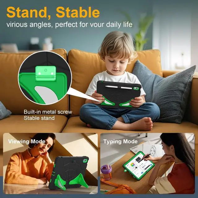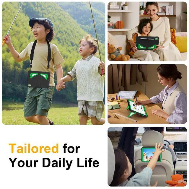 Function Stand: Auorld Case for ipad a16 case comes with a fun eye shaped stand that supports 60 and 30 viewing and can be easily kicked out as a hands-free stand, allowing your child to enjoy their videos, games, or sketches in the comfortable viewing position ^^ Adjustable Shoulder Strap and Pencil