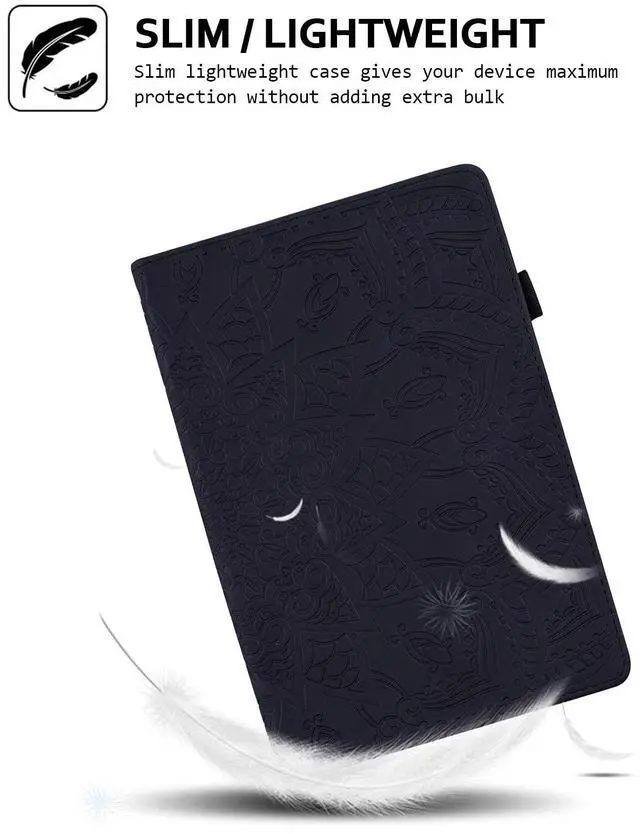 SM-T875/ SM-T876/ SM-T878]Features: - Pretty mandala flower embossed surface, offers exquisite and attractive look for your tablet. - Easy access to all features and controls (camera, charging port, volume button, etc) without removing the case. - Elastic strap closure ensures cover securely closed, double fixing your device when fold the front cover backward for reading. - Front-to-back protective cover case give a full protection for your tablet against dust, water, fingerprints, scratches, shocks and bumps. - It can be used as a stand with adjustable horizontal position that allows you to view it easily when it is placed on a desk. - Interior with 2 card holders for carrying your ID/ credit cards/ business cards/ driver's license/ photos. - Side with an elastic loop holder for stylus.