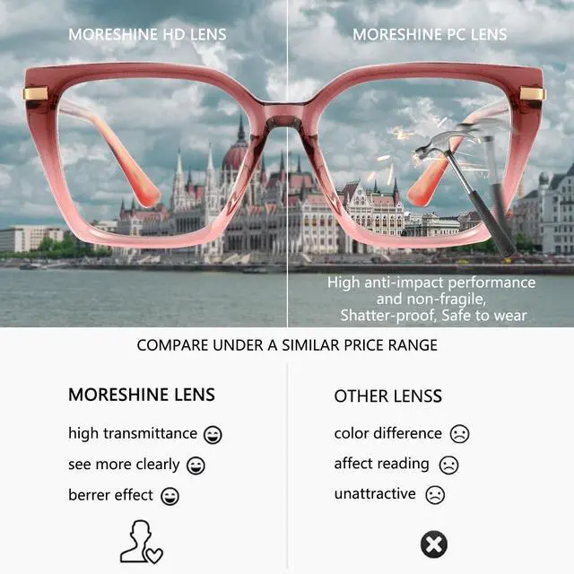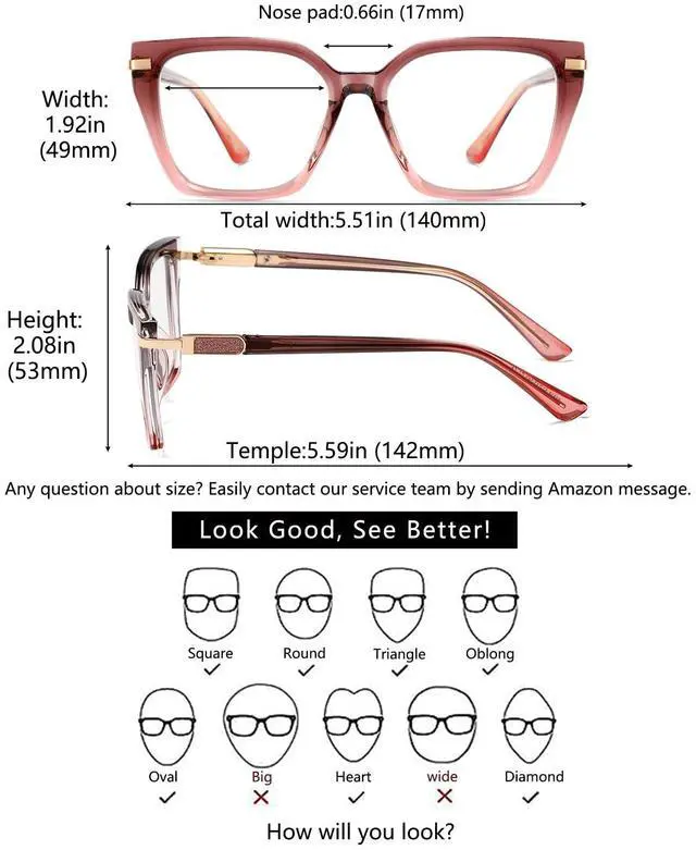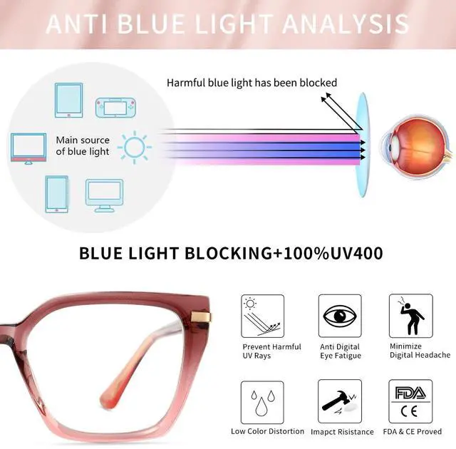 Simple style, rich detail. ^^ HEALTHY FUNCTION-Blue light makes our eyes feel dry or painful when we working, driving, gaming, reading or using computers, phones and TV. A single pair of blue light blocking lens glasses with UV400 protection can fix that. Also the original clear lenses can be replaced with your prescription lenses in optical store. ^^ DECENT GIFT-Glasses are wrapped in a minimalist black box. Suitable gifts for women like girlfriend, mom, sisters, wife, daughter or cousins. Ready to send out any holidays like souvenir, wedding, engagement, valentine's day, birthday, anniversary, graduation, prom, carnival, banquet or party.
