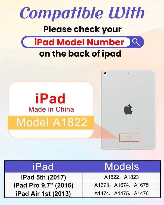 Compatibility: This case is only compatible with iPad 5th Generation Case 2017/Air 1st 2013/Pro 9.7 Inch Case