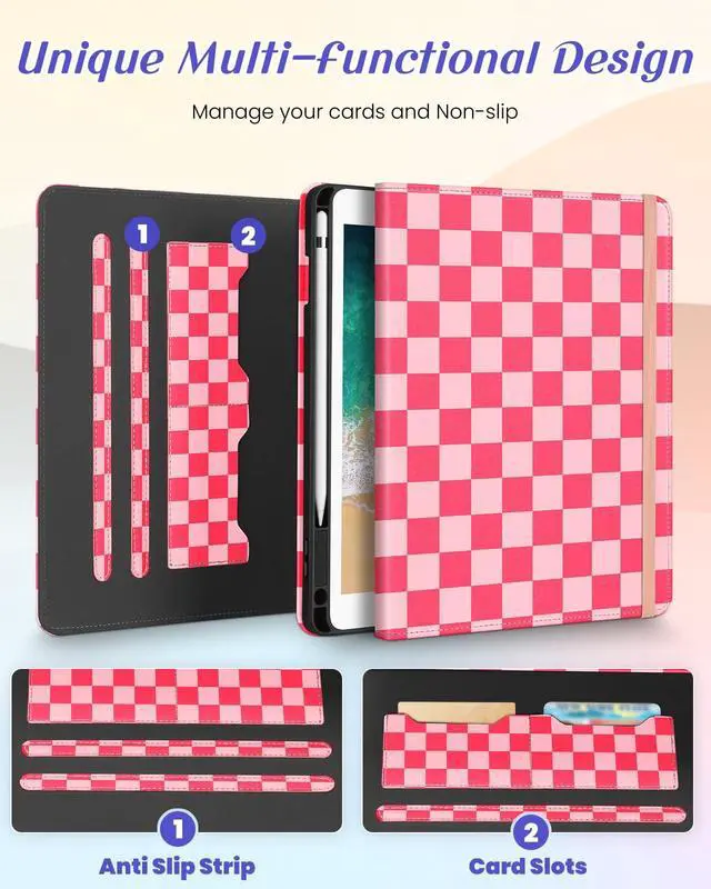 Multi-Functional Design: This for iPad cover 5th generation case/for Apple for iPad Air 1st generation case/for iPad Pro cover 9.7 inch case features an elasticized cord strap, which ensures that your tablet closes securely, provides slip or drop protection. It also has two card slots designed to hold your bank cards business cards and other cards