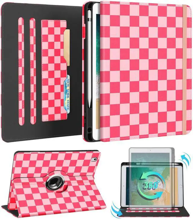 Kidcube for iPad 5th Generation Case 2017/Air 1st 2013/Pro 9.7 Inch Case 2016 - Women Girls Kids Cute Rotating Stand Folio Cover with Pencil Holder & Card Slot Girly Pretty Unique Teens Design Cover