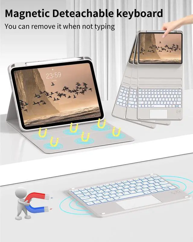 Note: It will not be compatible other model. Please check your iPad model before purchase ^^ Detachable Bluetooth KeyboardDetachable Bluetooth keyboard with magnetic case, instantly becomes a portable laptop, easy to install and remove, built-in rechargeable battery, no need to replace the battery, Type-C charging cable It can be fully charged in 2 hours, work for at least 230 hours, stand by for 90 days, making it more convenient to use ^^ Full protection & Pencil HolderThis iPad 10.9 inch case is made of high-quality synthetic leather outer shell and soft TPU inner shell, the inner shell is designed with honeycomb grid pattern for better heat dissipation and anti-slip, which can better protect your tablet from accidental drops and collision scratches. Prevent losing or breaking your Apple Pencil when you're walking or outdoor (Please note: Pencil is Not included) ^^ Multiple Viewing Angle & Auto Sleep/WakeThis Keyboard Case 10.9" adopts magnetic adsorption and can be firmly fixed on the case, so it can provide a variety of stand angles for adjustment at any time. Move iPad forward or backward along the case to choose the angle that works best for your comfort. Built-in magnetic strip, support smart automatically wakes or sleep function, easily wake or close your iPad 10th Gen at any times, it can better save tablet power and extend its service life ^^ Package Content & After-sales ServicePackage including: 1 x 10th Gen ipad case, 1 x Wireless BT Keyboard, 1x USB charging cord, 1 x user guide. Provide 30 days return and exchange service. If you have any questions, please contact us by email