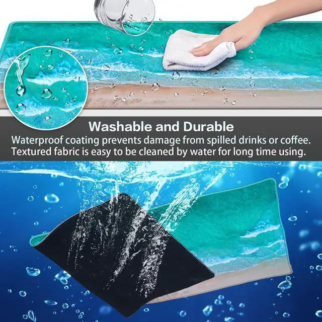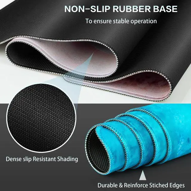 Anti-Slip Rubber Base: This large mouse pad can grip your desk firmly, avoid the random movement, and provide a stable and accurate operation while you are gaming/working. Double Stitched EdgesDouble stitched edges protect the mouse mat from wear, deformation, fraying. Durable for long time using. Washable DesignPrevent the damage from spilled drinks/coffee. Easy to be cleaned by wet towel, and washed for long time using.