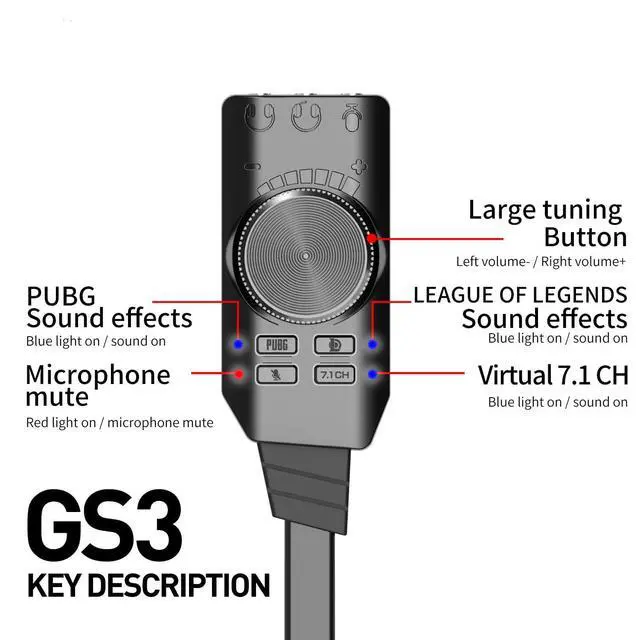 ^^ Functional Keys: Functional keys includes microphone-mute, 7.1 Channel ON/OFF and -up/down roller, sound effect buttons for 2 popular games, easy to use.