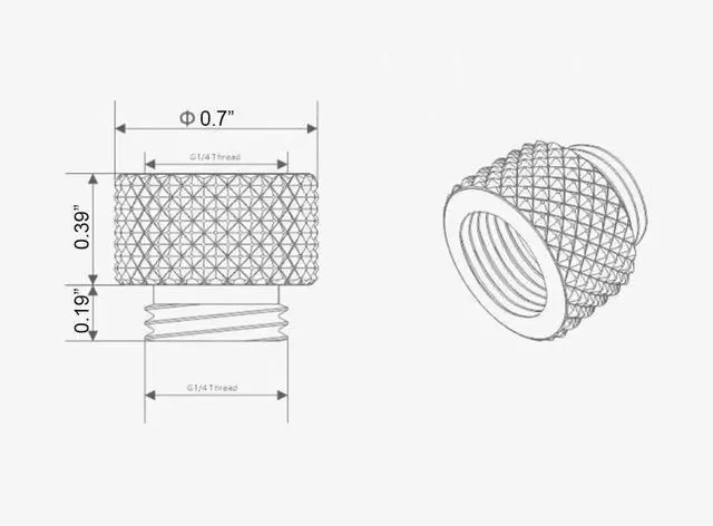 The dracaena. io 6 Pack G1/4" Male to Female Extender Fittings is engineered for precision and reliability in custom PC liquid cooling loops. With a compact 10mm height and 18mm outer diameter, these fittings are ideal for tight spaces and seamless integration into standard water cooling systems. Constructed from chrome-plated brass, they provide superior durability, corrosion resistance, and efficient heat dissipation while maintaining a sleek, polished appearance. Each fitting is equipped with a concealed O-ring groove for a secure, leak-proof seal, ensuring long-term system stability. Designed for easy tool-free installation, these fittings are available in Black, Silver, and White to perfectly complement your builds aesthetic.