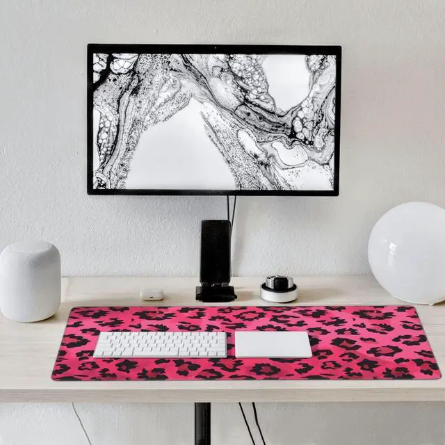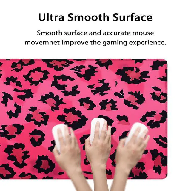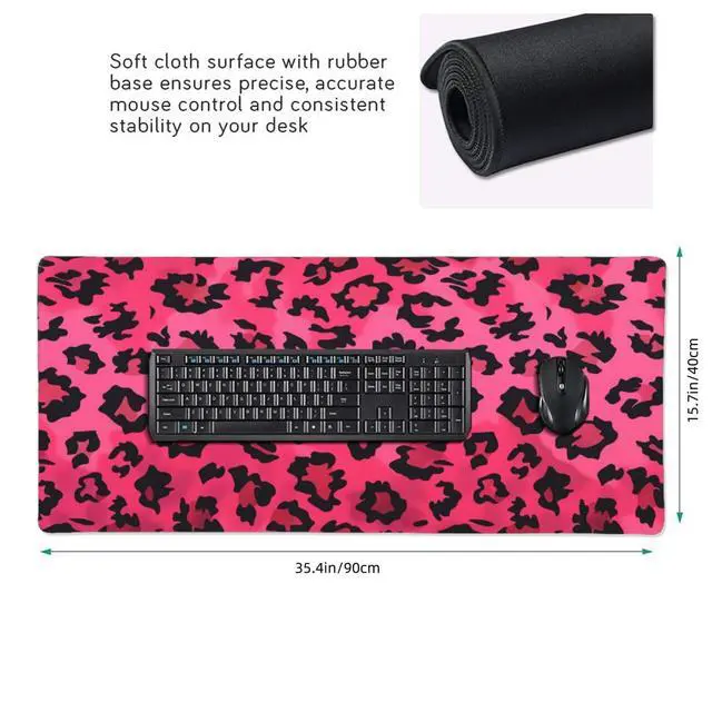 KOBWOPI 35.4 x 15.7 in, XXL Large Mouse Pad for Desk, Extended Keyboard Mouse Mat for Computer Office, Big Mouse pad with Stitched Edges, Gaming Pc-Pink Leopard Print