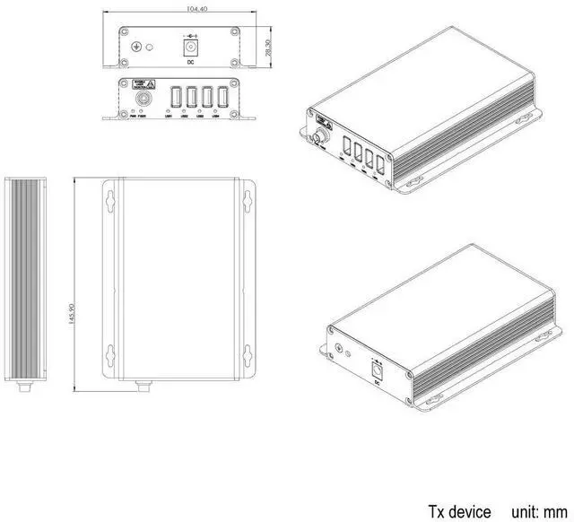 (non-condensing)Package: 1. 1 x transmitter (client side) 2. 1 x receiver (host side). 3. 1 x Power Adapter DC 5~12V with US/EU/UK/AU plug. the receiver is powered by the host computer. 4.1 x USB Type B to Type A cable for Rx which is powered by Computer. 5. 1 x Manual.