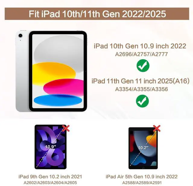 • Check Your Ipad Model: This iPad 10.9 case is designed for iPad 10th generation 10.9-inch 2022 (Model: A2696/A2757/A2777), iPad 11th Generation Case 11 inch A16 2025 (A3354/ A3355/ A3356). Not compatible with any other iPad model. Please double check the back model of your iPad, so you can enjoy the ipad case 10th generation as soon as possible.