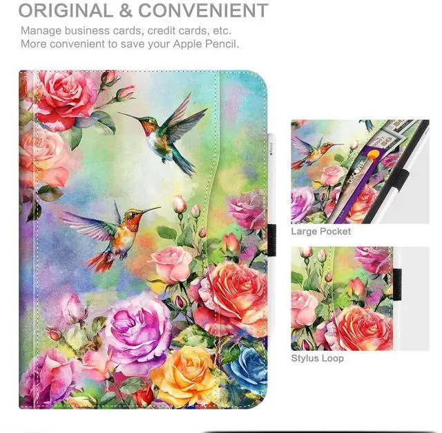 Lokigo New for iPad 11th Generation Case 11-inch (A16) 2025, iPad 10th Generation Case 2022 10.9 inch, iPad Cover 10th Generation with Pencil Holder, Hand Strap, Auto Wake/Sleep, Hummingbird