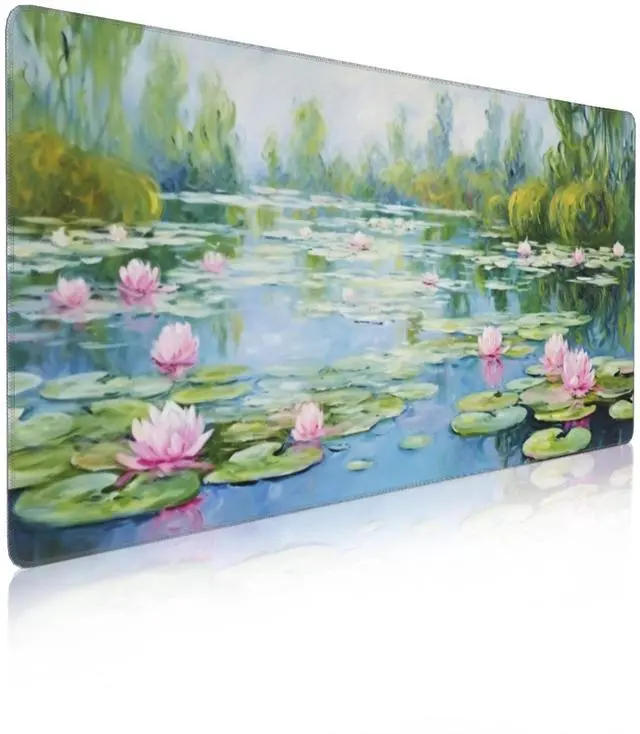 Mouse Pad Pink Water Lilies Large Gaming Mouse Mat with Stitched Edges,Weeping Willows Non-Slip Rubber Base Mous Mat for Office Computer Keyboard Laptop Home(31.5X15.7 in)