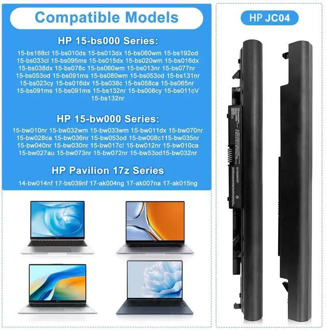 Compatible part number: 919700-850 919701-850 919681-221 919682-121 919682-421 919682-831 JC04 JC03 jco4 jco3 HSTNN-DB8E HSTNN-H7BX HSTNN-L67N HSTNN-PB6YHSTNN-DB8A HSTNN-LB7V HSTNN-LB7W HSTNN-HB7X 2LP34AA HQ-TRE71025 TPN-C129 TPN-C130 TPN-Q186 TPN-Q187 TPN-W129 TPN-W130Compatible laptop model: HP 15-bs000 series15-bs0xx 15-bs168cl 15-bs010ds 15-bs013dx 15-bs060wm 15-bs192od 15-bs033cl 15-bs095ms 15-bs015dx 15-bs020wm 15-bs016dx 15-bs038dx 15-bs078cl 15-bs060wm 15-bs013nr 15-bs077nr 15-bs053od 15-bs091ms 15-bs080wm 15-bs053od 15-bs131nr 15-bs023cy 15-bs016dx 15-bs038cl 15-bs058ca 15-bs065nr 15-bs132nr 15-bs008cy 15-bs011cy 15-bsnr 15-bs0115dxHP 15-bw000 series15-bw010nr 15-bw032wm 15-bw033wm 15-bw011dx 15-bw070nr 15-bw028ca 15-bw036nr 15-bw053od 15-bw008cl 15-bw035nr 15-bw040nr 15-bw030nr 15-bw017cl 15-bw012nr 15-bw010ca 15-bw027au 15-bw073nr 15-bw072nr 15-bw53od 15-bw032nrHP 17-BS000 series17-bs0xx 17-bs1xx 17-bs008cy 17-bs10nr 17-bs011dx 17-bs012cy 17-bs013cy 17-bs018cl 17-bs019dx 17-bs020nr 17-bs022nr17-bs027cy 17-bs039nf 17-bs049dx 17-bs061st 17-bc062st17-bs067cl 17-bs072nr 17-bs153cl 17-ak004ng 17-ak007na 17-ak015ng 17-ak013dx 17z-1ex13avother14-bw014nf 15q-by002ax HP 246 255 250 G6 Pavilion X360 15-BR001TX Pavilion X360 15-BR004TX Pavilion X360 15-BR005TX
