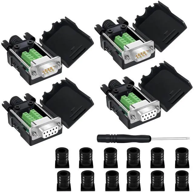 Its versatile 12-24AWG terminal wire range makes it suitable for various RS232 communication needs ^^ Reliable Signal TransmissionBuilt with copper contact materials and gold-plated pins, this DB9 connector provides excellent conductivity and corrosion resistance. It ensures stable signals across different devices, reducing data loss and improving connection stability ^^ Complete Package for Easy InstallationEach set includes a DB9 Male Adapter, protective covers, and a sturdy case for storage. Its design with clearly labeled signal ports simplifies wiring, making it an ideal choice for professionals needing a durable DB9 breakout connector