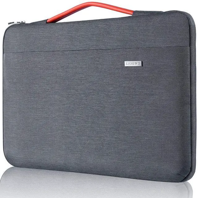 degrees 3 layers protection: protect your tablet or laptop against dust, dirt, scratches and bump ^^ Well Organized - The front big accessory compartment has 2 small pockets inside can store enough accessories such as your phone, iPad Pro, mouse, power charger, pens pencils and other office supplies, classify for your common items ^^ Side Laptop Pocket Design - Special side laptop pocket with easy glide top-quality zipper, this design makes your laptop far from being dropped accidentally. It won't snag or catch your laptop upon opening or closing ^^ Slim and Easy Carry - Carry with the comfortable and flexible leather handle, easy to stretch, slipped inside your backpack, messenger bag or briefcase. It's widely for man or women lady for office
