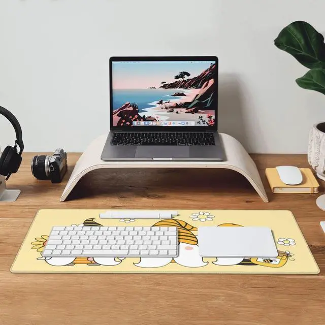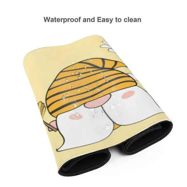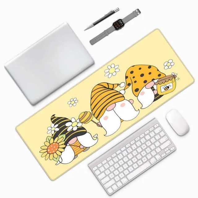 Famame Laptop Mouse Pad Cute Sunflower Bee Gnomes Desk Mat with Stitched Edges 31.5X 11.8 inch Non-Slip Large Keyboard Rubber Writing Table Mat for Office Home