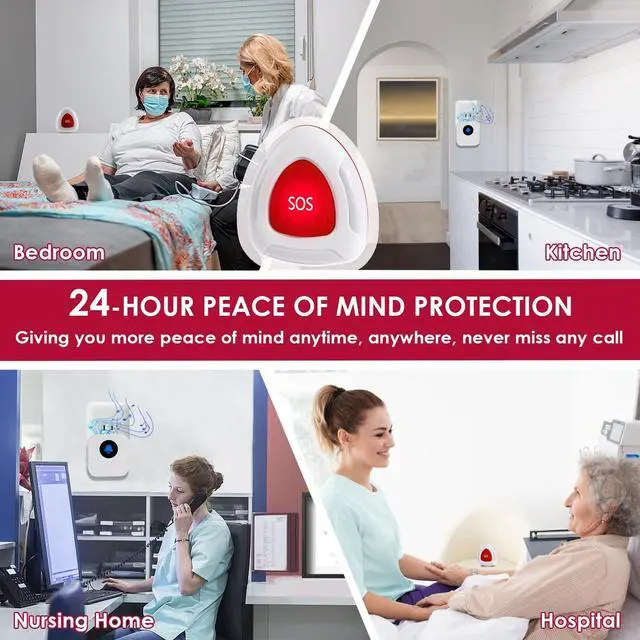 Note: The receivers are for indoor use and are not waterproof. They must be plugged into a dry, indoor power outlet. ) ^^ Expandable to 30 Units for Home & Professional Care This system grows with your needs! Start with the basic 2x2 set and effortlessly expand the network to support up to 30 receivers and call buttons (sold separately). It's the perfect scalable solution for larger homes, assisted living facilities, or nursing homes, ensuring comprehensive coverage for multiple residents and caregivers. Our professional support team is standing by to assist with your setup.